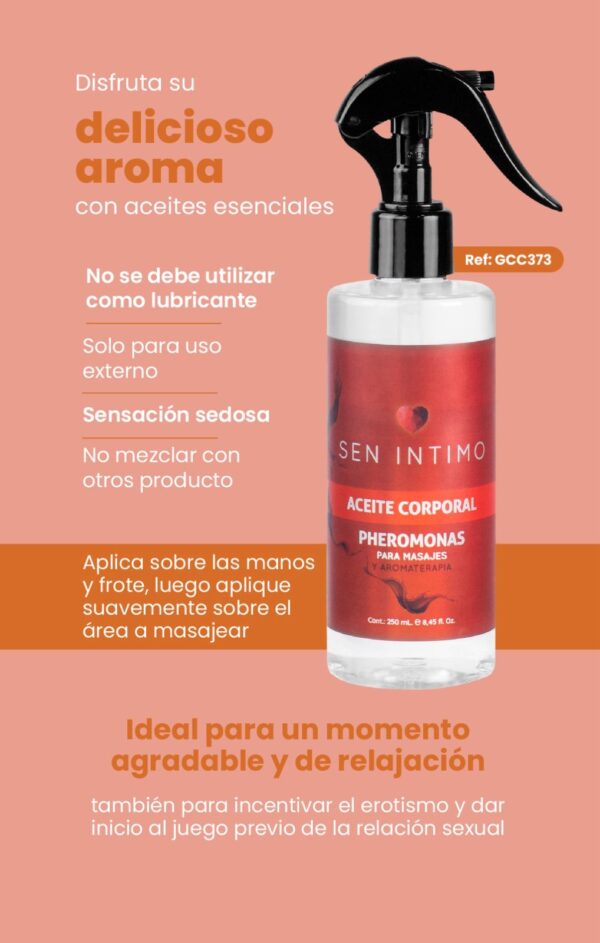 Recomendaciones: Los aceites para masajes corporales son ideales para un momento agradable y de relajación, también para incentivar el erotismo y dar inicio al juego previo de la relación sexual.