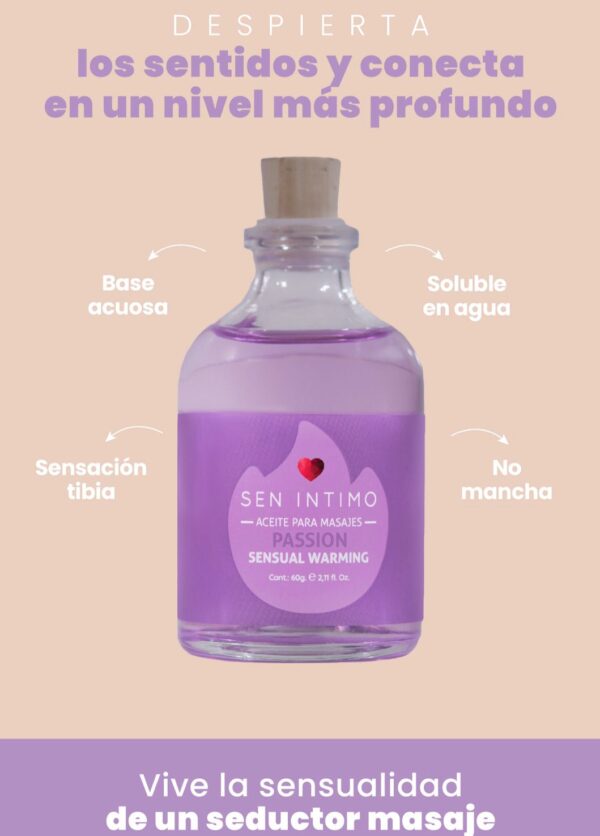 Sensual Warming Oil x 60 ml: Base Acuosa, soluble en agua, no mancha. Tibio. No requiere Jabón: Fragancia passion, presentación en envase de vidrio con linda tapa de corcho x 60 m