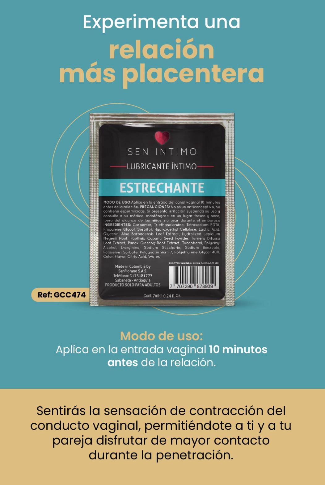 Modo de uso: Aplica en la entrada del canal vaginal 10 minutos antes de la relación.