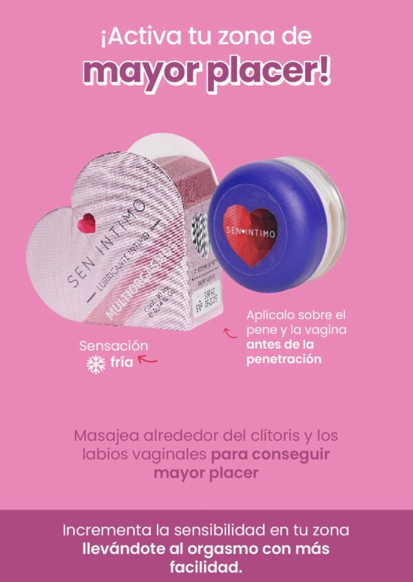 Modo de uso: Masajea suavemente y en círculos alrededor del clítoris y los labios vaginales para conseguir mayor placer. Puedes aplicarlo sobre el pene y la vagina antes de la penetración.