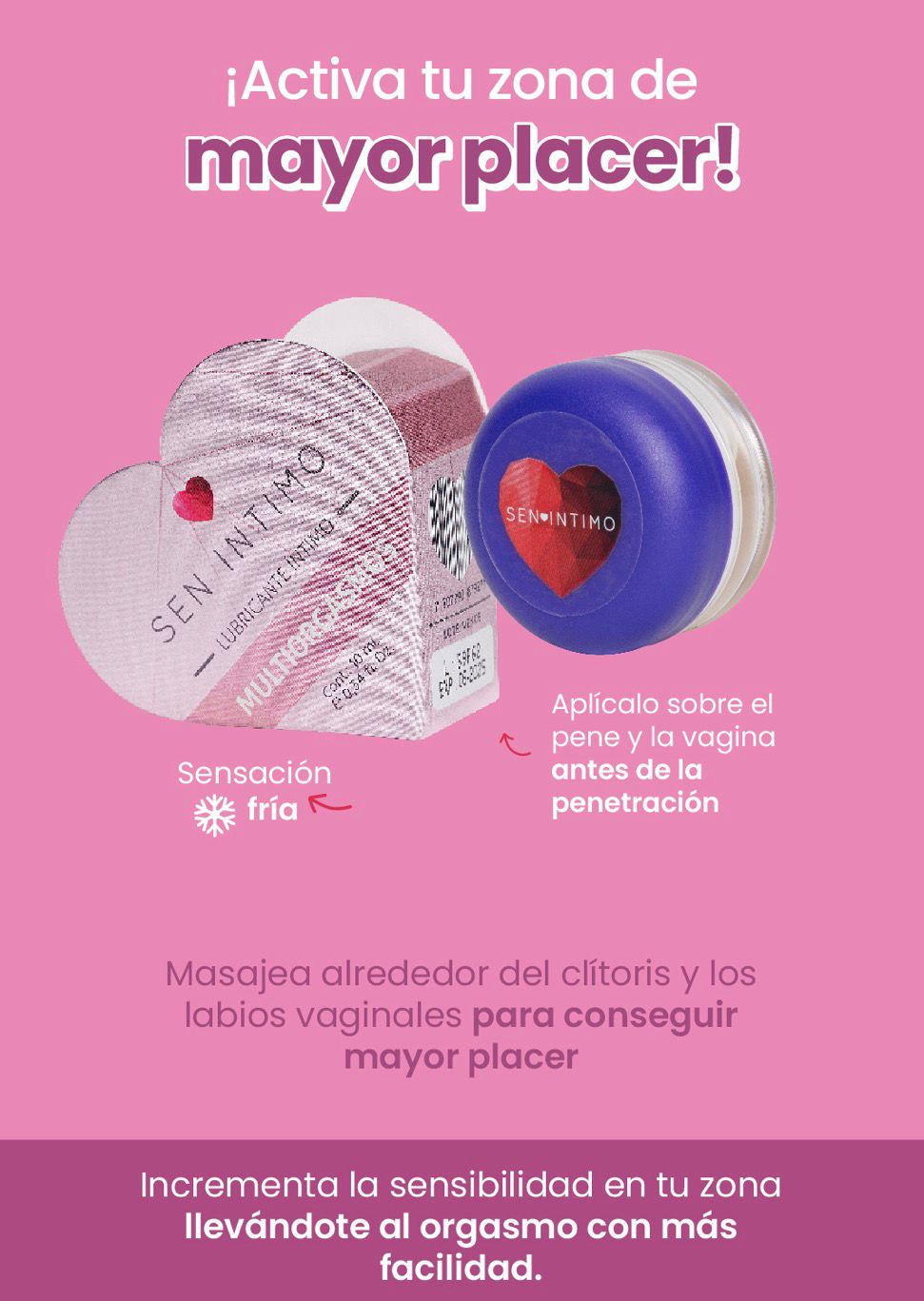 ¡Activa tu zona de mayor placer! Diseñado para que descubras tus zonas de mayor placer y las estimules. Mejora el flujo sanguíneo en tu zona íntima e incrementa la sensibilidad, llevándote al orgasmo con más facilidad.